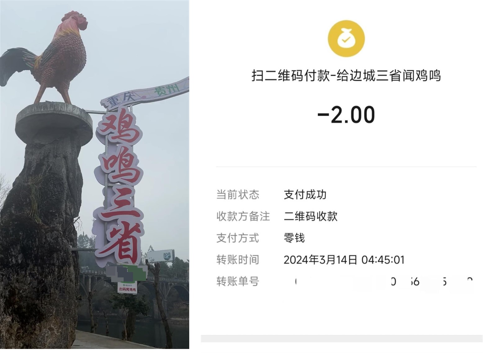 最近網(wǎng)上有個娛樂事件:在重慶、貴州、湖南三地交界的邊城,一農家樂門口安放了一只公雞雕塑,并懸掛二維碼,游客掃碼支付二元后...
